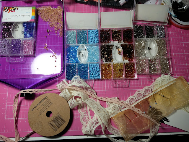 W tym miesiacu ( nie liczac malucha z ostatnich wpisow co to go sobie sama sprezentowalam ) dostalam dwie lalki wiec ostro pracuje nad przyodziewkiem,cobym je mogla godnie zaprezentowac. Kreacja dla panny w rozmiarze SD o przepieknej zreszta buzi juz prawie gotowa :) W typowym dla mnie stylu "masochistycznym" czyli trzy miliony recznie naszywanych koralikow i wstazeczek,ale za to jak sie prezentuje! I tak sobie siedze dlubiac;